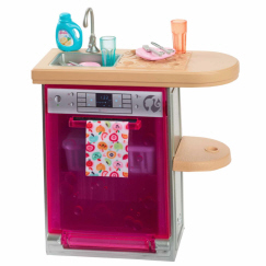 Welcome to your Barbie World™. Build your best Barbie™ life! This Barbie World toy dishwasher set features a sink and a door that really opens to load those 'dirty' dishes that come out sparklin' clean, over and over again. Accessories like plates, cups, a drying rack, detergent, and kitchen rag will have kids doing dishes for fun with Barbie! Doll sold separately. Colors and decorations may vary.