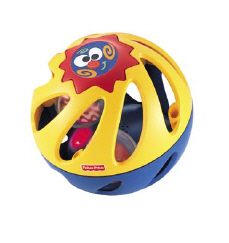 When your baby learns to reach and bat at objects, a whole new level of comprehension and physical achievement is beginning. This colorful ball encourages and rewards those actions. It wiggles and wobbles, and plays lively music and fun sounds while two flutterballs roll around inside. Flashing lights add to baby’s delight! Requires 3 “AA” alkaline batteries, not included.