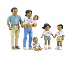 An assortment of 3 items: 3 each of 74006 Mom & Baby, 2 each of 74007 Dad & Baby, and 3 each of 74008 Side-by-Side Siblings. Both of the parents have a special feature: the mom has the ability to rock the baby back and forth and the dad can raise both of his arms to pick up his child, etc. They also have ball and joint articulation to provide them with more realistic movements.