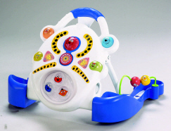 The 3-In-1 Baby Explorer grows with baby from a Gym, to an Activity Table, to a Walker! Features include busy beads, click clack pages and a soft dangling character atom for baby to bat at in the Gym mode . There are surprise "chutes" for baby to drop balls through to activate lights and sounds in the Activity Table Mode and baby can push the Walker along to the "Sunny Day" song with character phrases and lights that play in time to the speed of baby's steps. Each activity helps baby develop sensory, motor and cognitive skills. Requires 4"AA" batteries