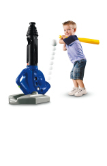 Batter-up! Three fun ways to play help kids learn to hit like a pro. Beginners hit from the tee. When they're ready for a little more challenge, a simple adjustment converts this battery-powered trainer to pop-up pitch play for rookies: balls automatically pop-up from the base, one after another! And for pros, the trainer auto-pitches 3 balls from up to 10 feet away. Includes battery-powered trainer, bat and 3 balls.