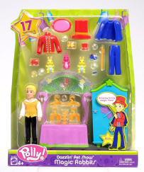 The Dazzlin' Pet Show™ Assortment lets everyone get into the act! Kerstie® and her Prancin' Pony™ can jump over a hurdle. Rick can perform magic tricks to make his Magic Rabbits™ appear from under his hat or make them disappear and reappear in the magic closet! Lea® has Acrobat Cats™ that can swing on the trapeze and even balance on a "magic" ball.