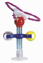 3 toys that combine to make one fun toy! The rain stick has colorful beads and a suction cup for attachment to a highchair or tabletop. Roller balls with flutter and rattle beads. A mirror for self-discovery with textured teether rings. To connect all 3 items, the flutterball opens to wrap around the rainstick allowing for movement up and down the rainstick when batted at. The mirror can be placed on top of the rainstick and will spin when batted at. When all the items are attached, baby can exercise their motor and sensory skills and have lots of fun!