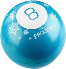 Celebrate Disney’s Frozen with fortunetelling fun! The original Magic 8 Ball™ novelty toy gets a Frozen-themed, icy cool makeover! Do you want to build a snowman? Is love really an open door? Ask the Magic 8 Ball® anything you want then turn it over and your answer will appear in the window! It features 20 different phrases, some classic (Reply Hazy, Try Again) and others inspired by the movie (Yes is a Warm Hug!). Decorated with glittery snowflakes, Magic 8 Ball® is the perfect gift for Frozen fans. Includes 1 Frozen Magic 8 Ball® novelty toy. Colors and decorations may vary.