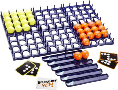Multiply the Bounce-Off™ fun with multiple challenges and game trays to allow multiple players -- up to six all together! The ultimate head-to-head competition game for young adults and families remains the same! Flip over a challenge card to determine the pattern you must attempt, then race to recreate it by bouncing balls into the grid. Two ways to play mean everyone can bounce together or play by relay; or combine the six trays for one big board and classic Bounce-Off™ play. Also includes options for fewer players.