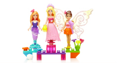 Dance the night away with Princess Ball Barbie™ by Mega Bloks Barbie™. This multipack includes three dazzling Barbie™ fantasy fashion mini figures: a beautiful mermaid, a pretty princess, and a magical fairy! With lots of shimmering blocks, seashells, and flowers, you can build stands to display their enchanting ensembles. You can even swap their cute hair bow pieces to show your Barbie™ style with each of the magical princesses!