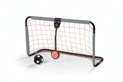 Two levels of play encourage and reward developing soccer skills! Beginners score fun sounds when they kick the ball into the net. The challenge grows along with your child’s skills—Pros have to hit the adjustable target