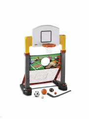 Your child can do it all with the Give Me Five Sports Station! The top 5 sports—basketball, baseball, football, soccer, and hockey—are all wrapped into one outdoor station. It requires no conversion between sports and includes 5 balls and a hockey stick. The Give Me Five Sports Station is perfect for any little sports player in your home.