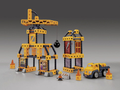 The TRIO Wrecking Ball Crane provides more easy ways for kids to build their creativity with bricks, sticks and panels. The set features easy to attach parts that click and hold together for big building play. The set includes a working crane, flatbed truck, and a construction worker figure and a variety of bricks, sticks and panels to create many different construction sites and buildings. Swing the wrecking ball at the special breakaway panel and let the demolition fun begin! Includes 133 pieces.