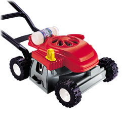 Here's a little mower that turns pretend lawn mowing into a bubble-blowing bonanza! To make cutting the grass even more fun for kids, it even features a realistic lawn mower sound, dipstick bubble wand, spinning flywheel with "grass clippings," clicking key and pull-cord "starter" for fun with or without bubbles. Includes bubble solution.