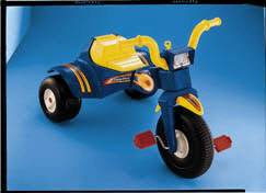 This tough, first trike is built tough to last a long time! It has an adjustable seat which enables the trike to grow with the child. Its storage area, with clicker key, adds more fun for the child. This tough trike has a wide wheel base for stability.