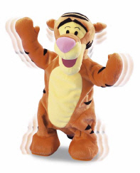 Get Up and Bounce Tigger is a child's ultimate friend because he can do some totally awesome things!! He dances, he sings, he bounces AND he can stand up and sit down all by himself. And the real fun is that you will never know which one he is going to do next!! Simply squeeze Tigger's paw and he will begin to bounce on his rear in two speeds - fast or faster with some really cute bouncing sound effects then Tigger will stand up all on his own so he can "bounce" on his feet!!! He will do all of this to the coolest dance re-mix version of the "Whoop-de-Dooper Bounce" song which will have kids everywhere doing "The Bounce" dance just like Tigger!! Of course, there will be lots and lots of sound effects and fun character phrases too!