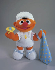 Adorable Ernie comes to life, like a real baby! Squeeze his hand and he’ll say cute baby phrases, coo and giggle too! Squeeze Ernie’s tummy to see his arms wriggle and put the pacifier to his mouth to hear him make feeding/slurping sounds! Adorable & life-like, Baby Ernie wants to be loved by you! Ages 18 months & up.