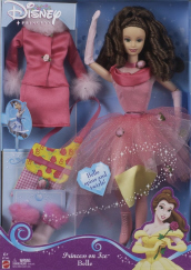 Princess on Ice™ Belle It's a winter wonderland for Cinderella, Ariel and Belle. Now girls can play out an enchanting ice skating performance with the Princess on Ice™ dolls that really spin on their ice skates. After the princesses take a bow, girls can change their magical dolls into a second outfit that includes a fur trimmed jacket, skirt, bag, and fur boots. All dolls come with skates, gloves and a princess crown