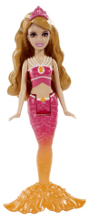 From the all new DVD Barbie™ The Pearl Princess, Barbie™ stars as a beautiful mermaid princess with a magical power over pearls. On an exciting journey to the Mermaid Kingdom, she perfects her powers working in a hair salon, where she makes new friends among her colleagues and clients. Girls can recreate their favorite moments and experience their friendships from the film with this assortment of adorable small mermaid dolls. This mermaid mini-doll enchants in coral and orange. She features ombre shading on her scale-textured tail, a unique bandeau, beaded detailing and a pretty princess tiara. Articulation at the waist means this hairstyling mermaid is ready for amazing underwater adventures! Collect her friends to expand the aquatic fun.