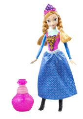 Discover the magic of Disney’s Frozen’s royal sisters and the transforming power of color-change Anna! Fill the included “perfume bottle” with icy cold water, then spray her crown and dress for magical color change. Warm water changes the color back, so the fun never ends! Anna is dressed in her blue skirt and pink bodice with a matching tiara to complete her princess look. Look for sister Elsa doll (sold separately) to double the Frozen fun! Doll cannot stand alone.