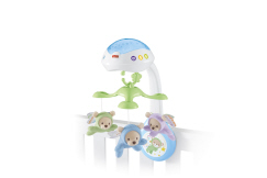 Removable mobile with 3 soft, butterfly bear toys. Easily clips to stroller canopy for take-along play