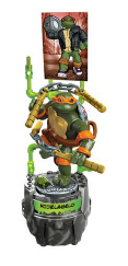Mutate Michelangelo and transform him from a tiny turtle into a party dude! Let's get this party started, dude! When he's not kicking the Foot Clan's butt, Michelangelo is kicking-back with some tubular tunes! Build this gnarly ninja and mutate him into the life of the party, taking him from a turtle tank to his natural habitat, the dance floor! Connect Michelangelo to the buildable pipes backdrop with '87 animated series-themed high res panels to create the most radical Turtles display!