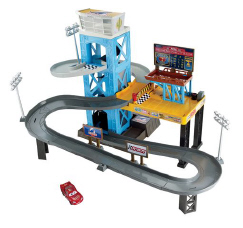 Enjoy 3 levels of continuous play with this large, motorized garage! With a real moving elevator, pit stop area, parking and tons of racing details, Disney•Pixar Cars fans can enjoy themed movie fun all day! This highly detailed, unique play set also makes a captivating gift for fans of all ages.