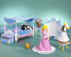 Now Cinderella comes in a precious small size with everything girls need to play out her story, two stretchy tops, two fabric skirts, two pairs of shoes and two removable wigs. Includes bed that transforms from rags to riches, bedding, a pink dress form, vanity and dressing screen. Also includes animal friends from the movie. Girls will love acting out the story with this miniature Cinderella playset. Package opens up to a bedroom play environment so girls can play out the story over and over again.