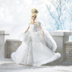 The Holiday Princess™ Cinderella doll is the perfect gift for any little princess. Holiday Princess™ Cinderella doll is dressed in a gorgeous, faux fur-trimmed, sparkly holiday gown with cape and muff. Includes a 2005 commemorative glass slipper.