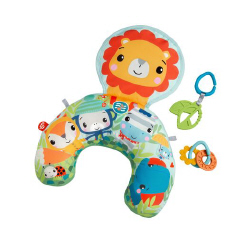 The Fisher-Price® Music & Vibe Lion Tummy Wedge is a supportive tummy time prop with a large crinkle lion friend and up to 10 minutes of music and vibrations to help comfort your baby and keep them engaged during wild tummy time play. Two repositionable activity toys, including clackers and a BPA-free teething toy, add to the fun! Lifting their head and pushing up to engage with the toys helps strengthen baby’s neck and core muscles.