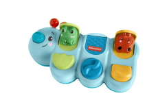 The Fisher-Price® Caterpillar Pop-Up toy has a fun surprise at every twist and turn. Babies can push, twist, and slide the buttons on the caterpillar’s belly to discover cute forest friends who pop up to say hello, and press the caterpillar’s nose to hear him squeak. All that turning and pushing helps baby strengthen those fine motor skills.