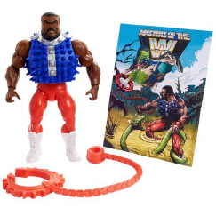 Figure features retro styling, 16 points of articulation and accessories unique to WWE® Superstars and Masters of the Universe®! Approximately 5.5-inches (13.97 cm), this figure comes in nostalgic packaging and includes a Collector's Booklet with character bio and mini comic!