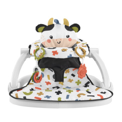 The Fisher-Price Sit-Me-Up Floor Seat helps support newborn babies so they can sit up, play and explore the world around them. This portable baby chair features a sturdy base with a soft, cow-themed fabric seat pad and wide leg openings for added comfort. The seat comes with 2 linkable toys for little ones to clack and teethe. And best of all, the travel chair folds to easily move from room-to-room or wherever you and baby go! Max. weight 25 lb (11,3 kg). Use only with a child who is able to hold head up unassisted and who is not able to climb out or walk.