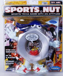Small time sports authoritities are reduced to the pee wee leagues when Norm Nutman™ The Sports Nut™ starts spouting his stats saavy! More annoying than jock itch and worse than a case of warts, our trash talking Norm Nutman™ is Radica's reigning dude of RUDE! Push his tongue for the ultimate sports trivia challenge. Play alone, with up to three other buddies or pick teams to put the screws to Norm. It doesn't matter if you're good, bad, excellent or indifferent- NOBODY escapes the terrible tongue of Norm Nutman™!