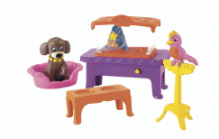 Decorate Dora’s Talking House with transforming accessories! The Pet Set includes Dora's puppy Perrito, feeding station, bird on perch and a hamster cage. Press the button and see the hamster run on its wheel!