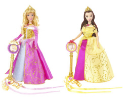 Disney Princesses Enchanted Tales* Dolls A magic wand accompanies the enchanting princesses Belle and Sleeping Beauty, dressed in glittering full gowns. When girls wave the wand over the princesses' dress, it makes a magical sound and the gown changes color! The princess talks to the little girl too. Storybook themed window box. Ages 3 and over. TV *Name subject to change