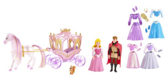 A fairy tale come true! Choose from Belle and Beast, Cinderella and Prince Charming or Sleeping Beauty and Prince Phillip gift sets. Each include a horse and rolling carriage that fits one doll, dress-up fashions, accessories, and more. Over 25 play pieces in a castle-like carry case! Each sold separately, subject to availability. Dolls cannot stand alone. Themed vinyl carry bag with handle. Ages 3 and over.