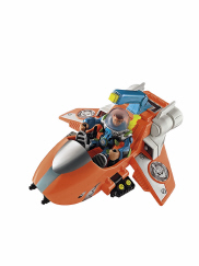 The Planet Heroes are a group of intergalactic heroes that protect the Galaxy from Black Hole and his evil minions. The Voice Comm Jet is the space jet used by the Planet Heroes to defend the planets from evil forces. The jet has cool landing gear, seats one figure and has sounds for a Planet Hero to receive a mission or hear the threats of Black Hole! Figures sold separately.