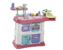 The Grow-with-Me Kitchen Restage offers moms young activity and nurturing play for toddlers and more realistic role play for preschoolers, in a kitchen that grows with their child.