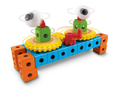 The Trio Gears Building Set with bricks, sticks and panels provides more easy ways for kids to build their creativity. The set features easy clicks bricks that stay together for big building play and NEW gears to bring your building to motion! Build a tower, clock, robot, helicptor and more! Simply stack the gears in any configuration and turn the gear crank to spin the gears. The set includes a variety of bricks, sticks, panels, 3 large gears, 10 small gears, 1 gear crank and 2 Trio eyes . Includes 77 pieces.