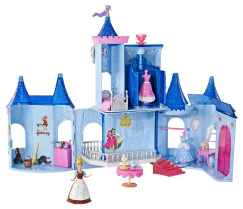 Girls will love bringing Cinderella's fairytale to life with this beautiful castle inspired by the beloved Disney movie. The castle opens to display five play areas inside in which to play out the entire fairytale. The clock tower turns to reveal Cinderella's attic bedroom where, with a turn of a dial on her dressing screening, her bird friends reveal her pink gown as it pops out from inside. With a beautiful Cinderella doll and three sparkling MagiClip™ fashions, girls will be able to reenact key scenes from the entire movie. Includes a castle filled with furniture, 3 MagiClip™ fashions and accessories. Doll cannot stand alone. Ages 3 and older.